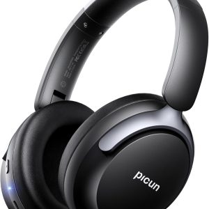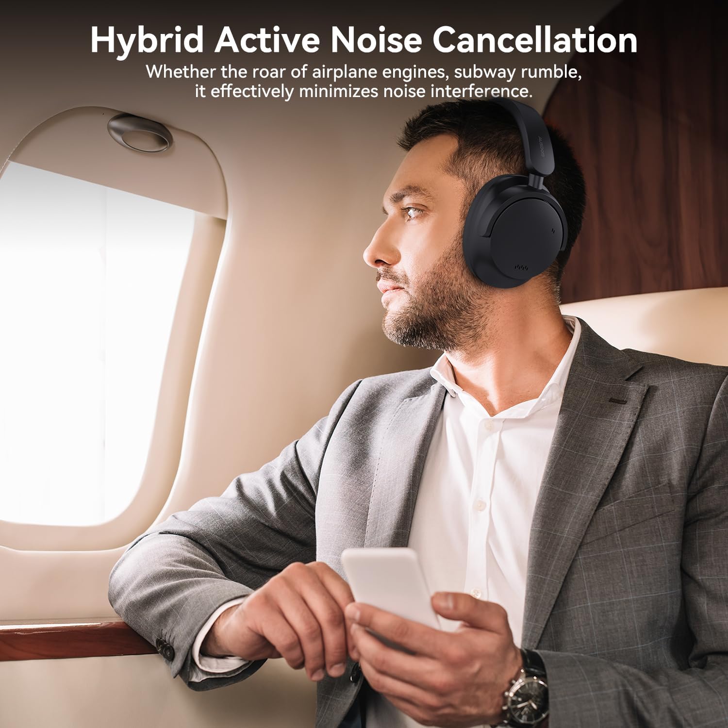 Picun NC60 Hybrid Active Noise Cancelling Headphones, Foldable Wireless Over Ear Bluetooth 5.4 Headphones, 80H Playtime, Transparency Mode, Stereo Bass, Custom EQ via App for Travel Home Black