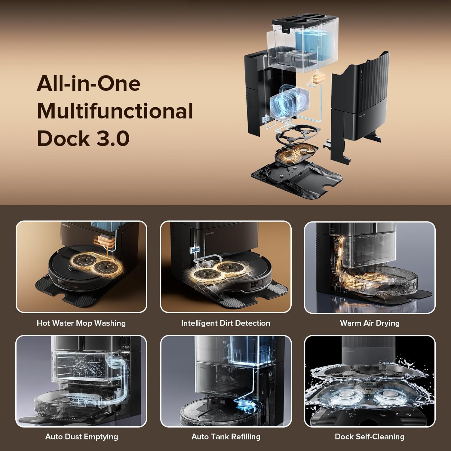 roborock Qrevo Master Robot Vacuum and Mop Combo, 10,000Pa Suction, FlexiArm Design Side Brush & Mop, Auto Mop Washing & Drying, Self-Emptying&Refilling, Dock Self-Cleaning, Obstacle Avoidance, Black